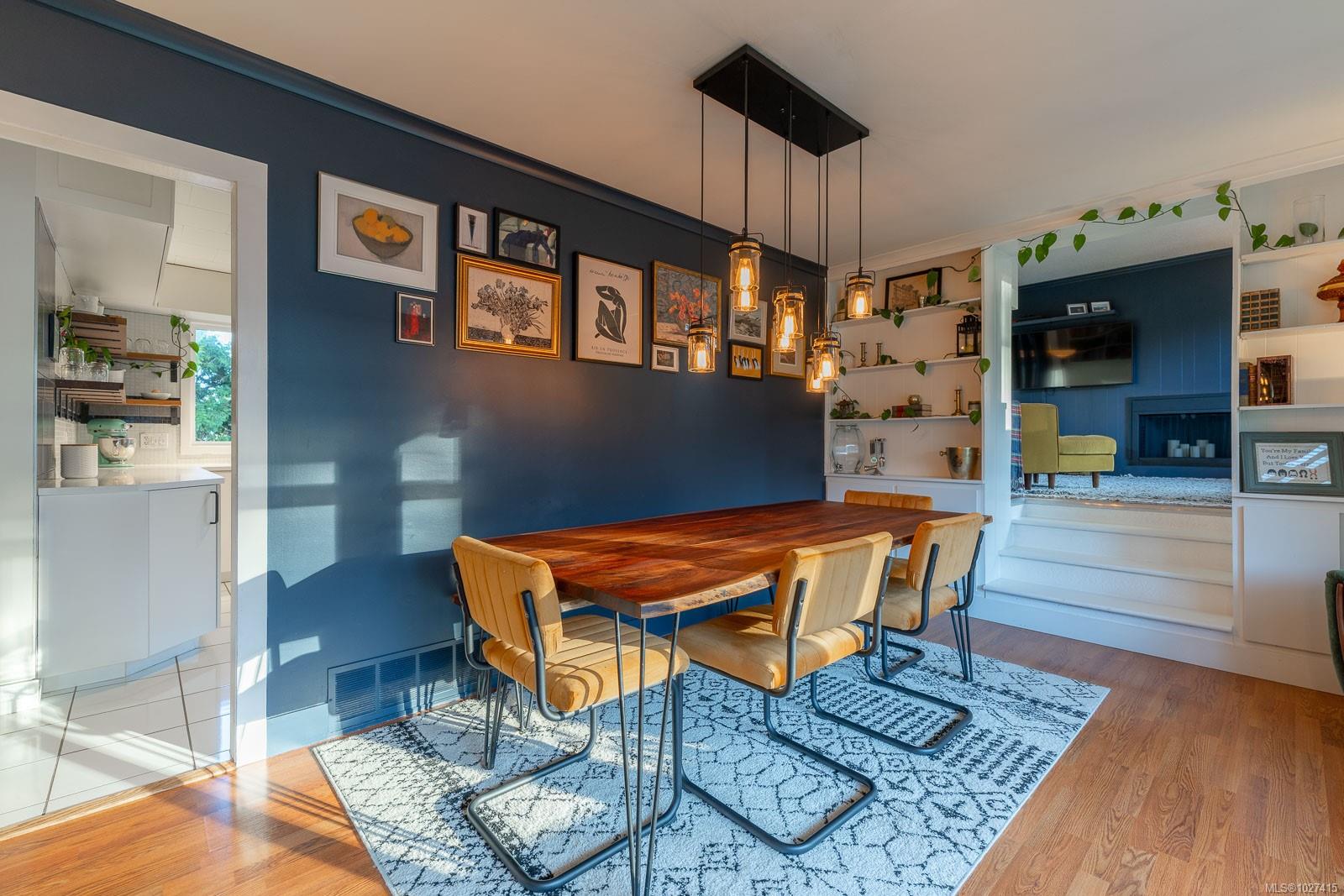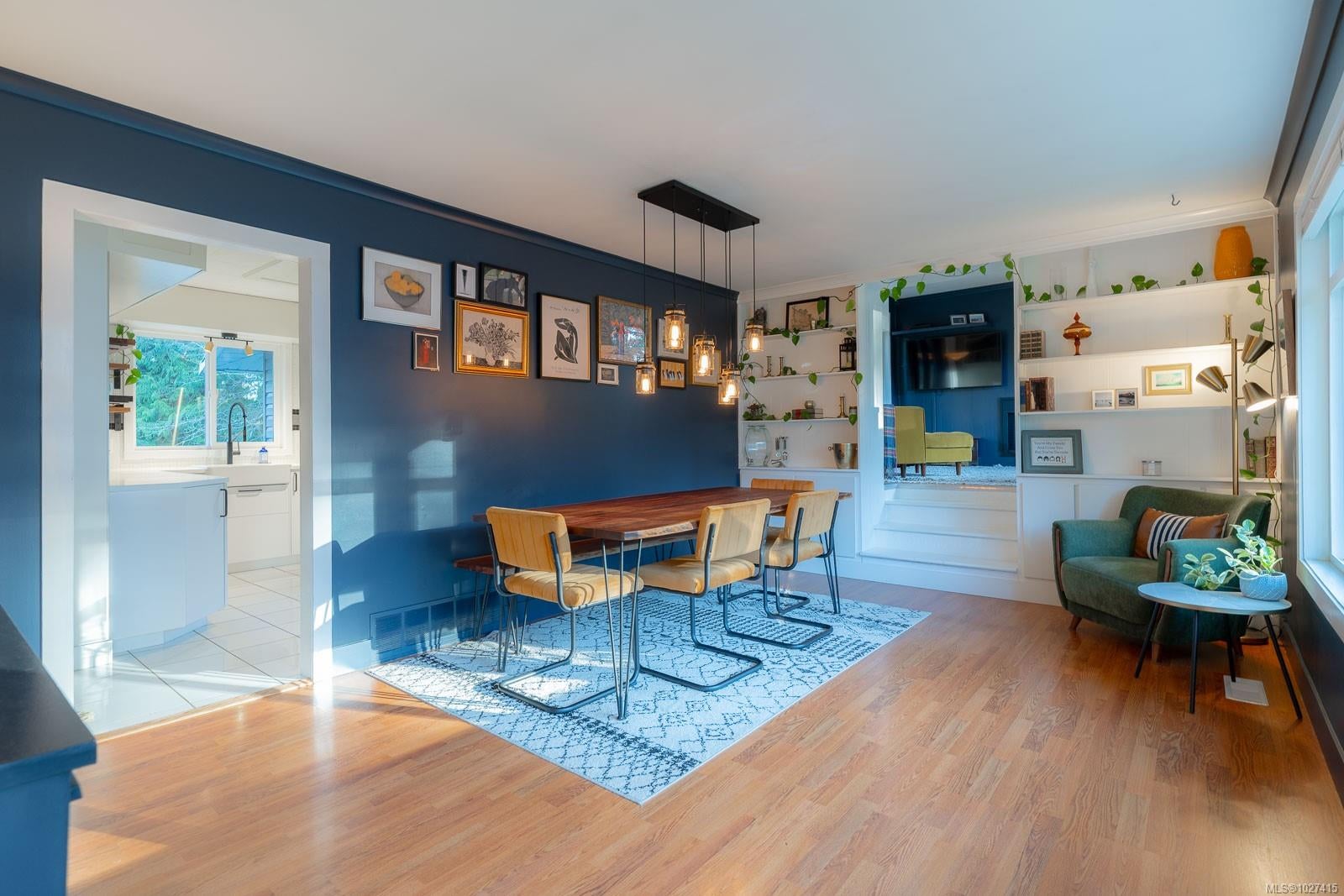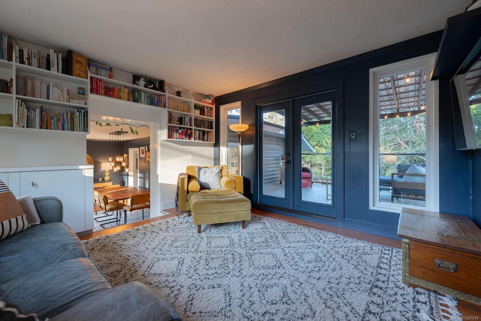Curb appeal and welcoming warmth is what sparks in this cherished family home. 3 Beds, and 2 baths, with immediate charm and unique features that are rare to find. The large bright front room is used as a gathering place for family and friends, with custom built ins and a step up extra bonus space for reading and quiet moments. French doors lead to a covered deck extending the living space for relaxing evenings. The kitchen is spacious and updated with new cabinetry, quartz countertops, ss appliances and gas range. Further updates include lighting throughout, new windows, large finished primary suite downstairs, and additional living room for media and play. Ample storage space, gas furnace and heat pump. On a large private lot, mature trees, fenced back yard, RV/boat parking, carport and storage shed that is fully secured with power. In a desirable central location within walking to schools, parks, shopping and transit. The perfect move in ready home, to enjoy for years to come!