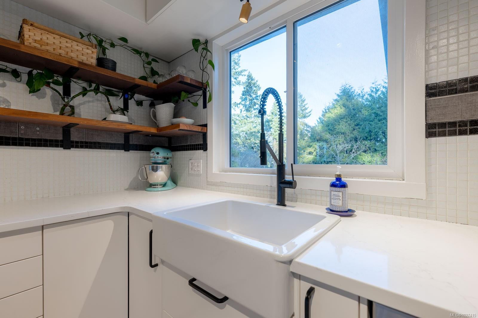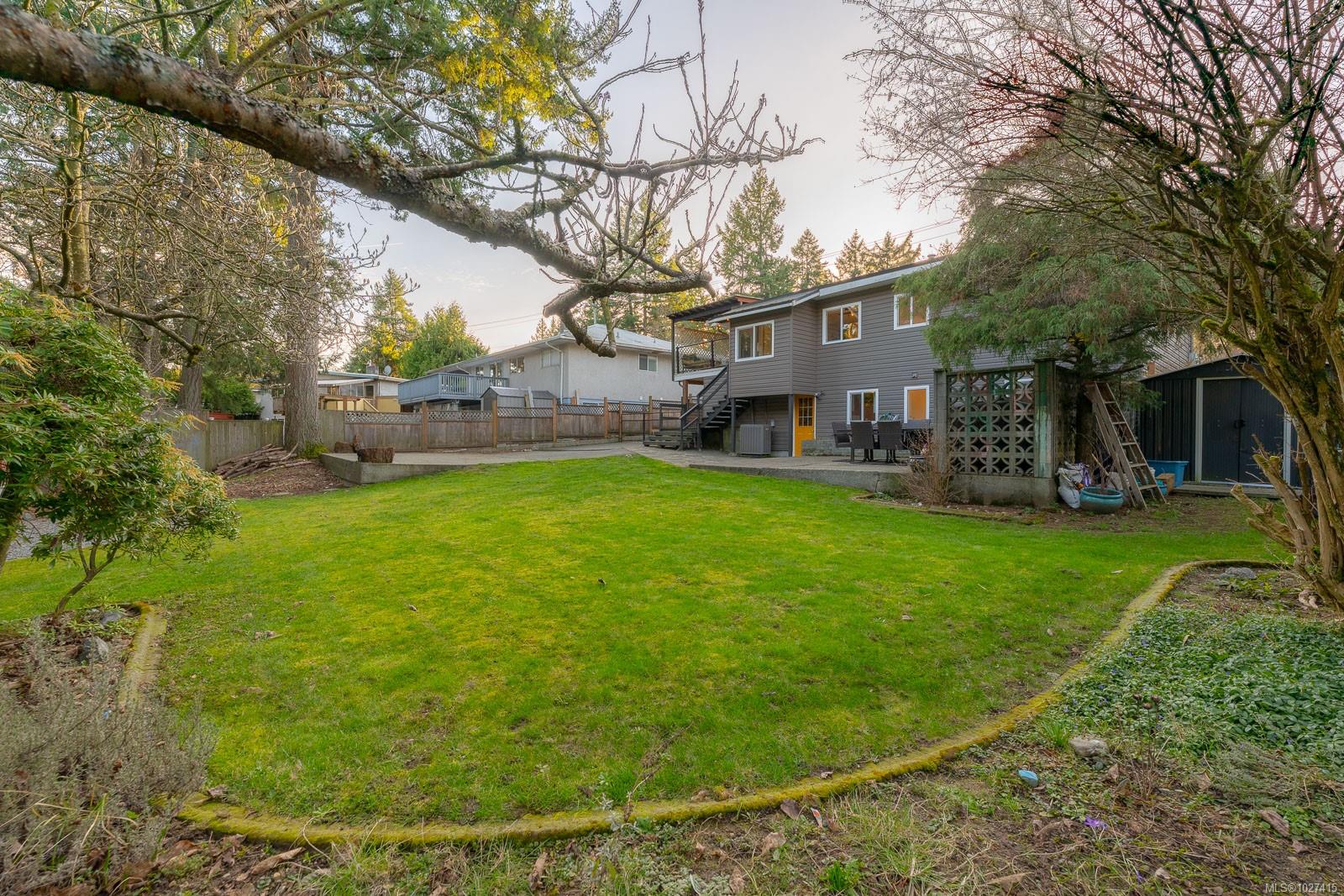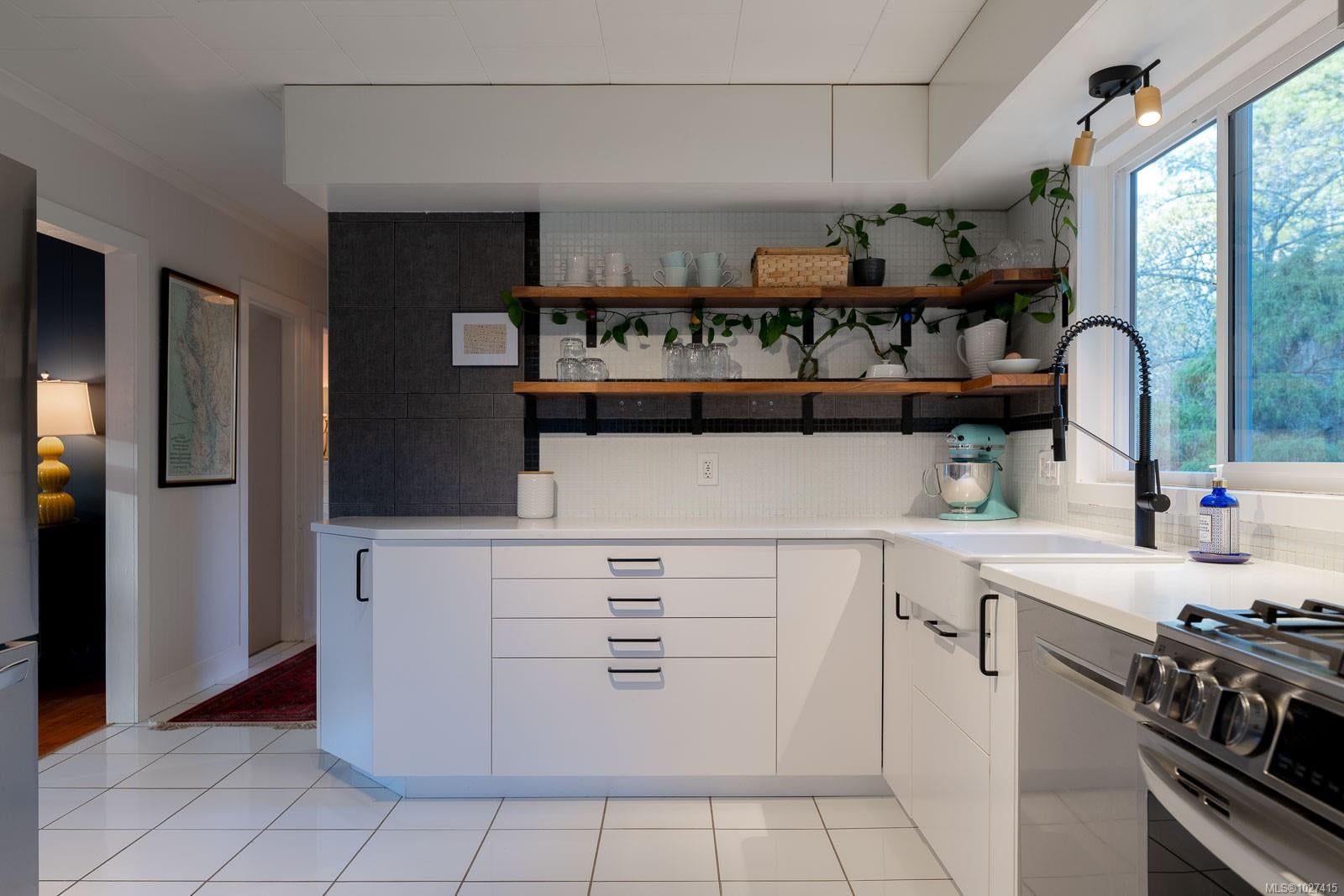 Curb appeal and welcoming warmth is what sparks in this cherished family home. 3 Beds, and 2 baths, with immediate charm and unique features that are rare to find. The large bright front room is used as a gathering place for family and friends, with custom built ins and a step up extra bonus space for reading and quiet moments. French doors lead to a covered deck extending the living space for relaxing evenings. The kitchen is spacious and updated with new cabinetry, quartz countertops, ss appliances and gas range. Further updates include lighting throughout, new windows, large finished primary suite downstairs, and additional living room for media and play. Ample storage space, gas furnace and heat pump. On a large private lot, mature trees, fenced back yard, RV/boat parking, carport and storage shed that is fully secured with power. In a desirable central location within walking to schools, parks, shopping and transit. The perfect move in ready home, to enjoy for years to come!