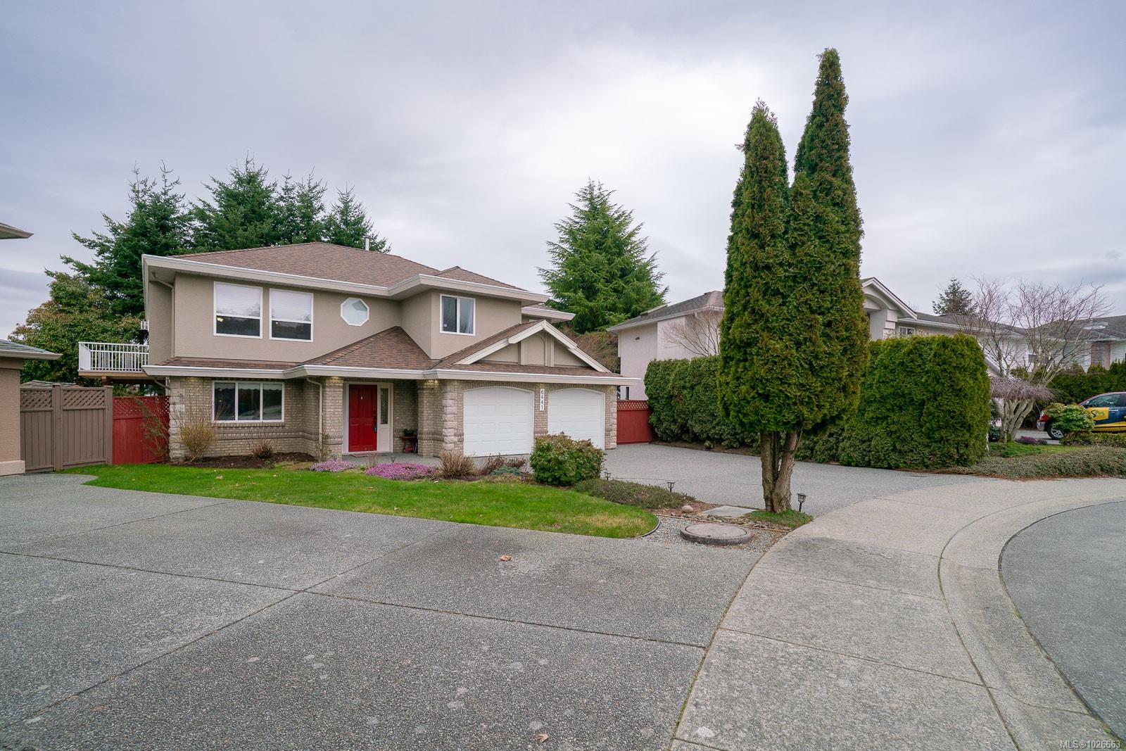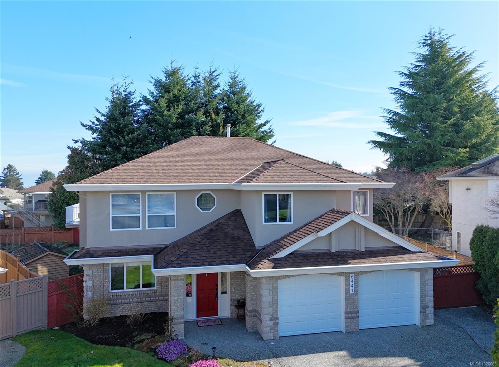 Beautifully maintained, North Nanaimo family home with Ocean view! 6 Bedrooms, 3 Bathrooms including a lovely 2 bedroom suite. This property is located in a quiet, well established North end neighbourhood, within walking distance to Mcgirr and Dover schools, shopping, transit, beaches and parks. Enter on the lower level you are greeted by a curved staircase and welcoming warmth. The lower level offers a bedroom or office, mudroom/storage, and access to the freshly updated 2 bedroom suite. New vinyl flooring, paint, & bathroom vanity in the suite, open concept kitchen and two large bedrooms. The main level boasts tons of bright living space, updated carpets, new gas fireplace 2025. The kitchen is so fresh with quartz countertops, cabinetry, backsplash & lighting done in 2024. The family room and step out deck offer the best ocean view in the house! Further features to note: RV parking with gate and paved pad, irrigation, gardens, gas furnace, new garage doors and openers 2025. Measurements taken from scanned GLA report, to be verified if important. Suite is Vacant and unauthorized.